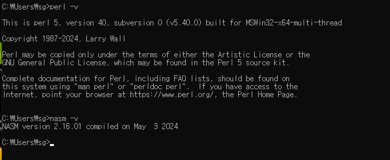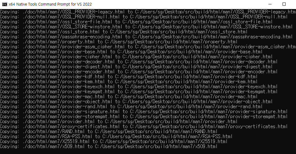 perl Configure VC-WIN64A --prefix=c:\Users\sg\Desktop\src\build --openssldir=c:\Users\sg\Desktop\src\build\ssl