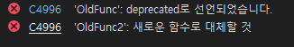 OldFunc2(); // 컴파일 경고: ‘OldFunc2’ is deprecated: 새로운 함수로 대체할 것
