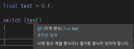 키워드의 상등연산을 통해 case라는 대응값을 실행 하기 때문에 문법적으로 부동소수점 오차가 있는 실수 사용을 막는다.